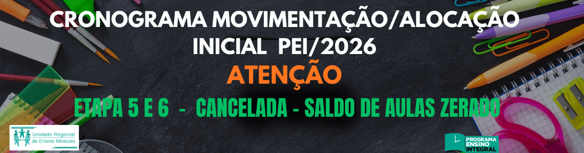 - Cronograma PEI/2026A Comissão de Movimentação e Alocação da Unidade Regional de Ensino de Miracatu convoca os docentes … Leia mais »