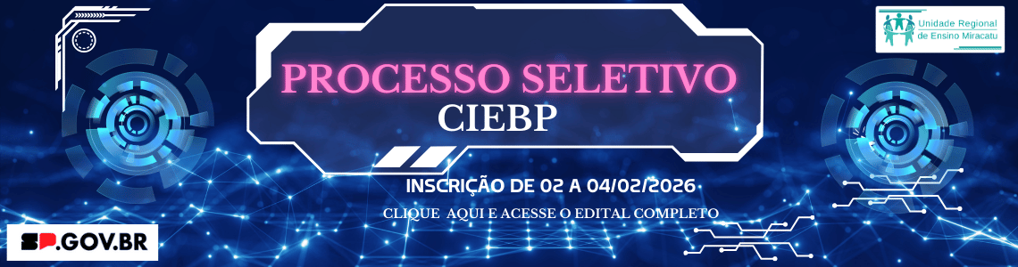 - EDITAL Nº 006/2026 – PROCESSO SELETIVO PARA O CIEBP VINCULADO À EE. …A Unidade Regional de Ensino de Miracatu, de acordo com a Resolução SEDUC 15/2024, torna público … Leia mais »
