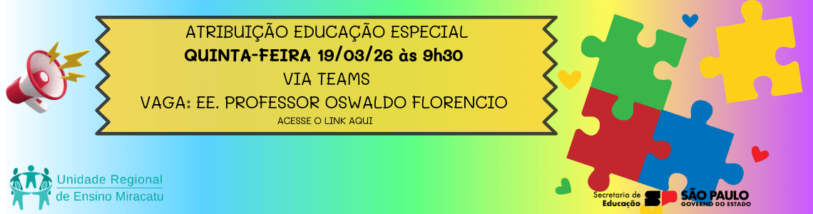 - SALDO DE AULAS – ATRIBUIÇÃO DIA 13/03/26 às 15hATRIBUIÇÃO DURANTE O ANO Em conformidade com as Resoluções SEDUC N°3, N° 10, N° 18 e … Leia mais »
