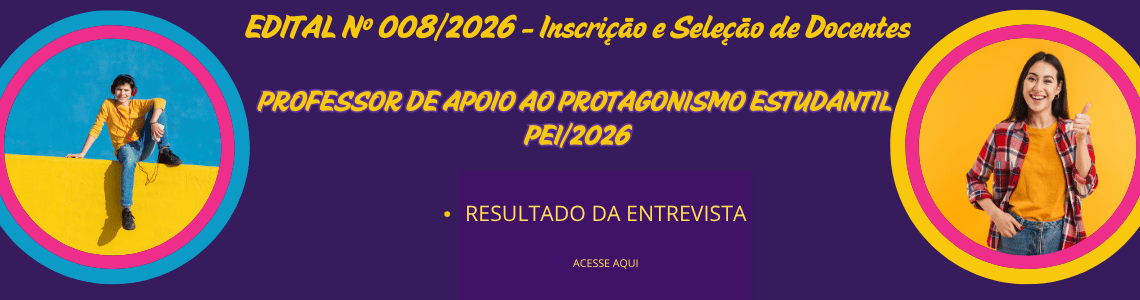 - Convocação para Entrevista de Professor de Apoio ao Protagonismo Estudantil(PAPE)Edital de Seleção para a função de Professor de Apoio ao Protagonismo Estudantil, convocamos os(as) candidatos(as) … Leia mais »